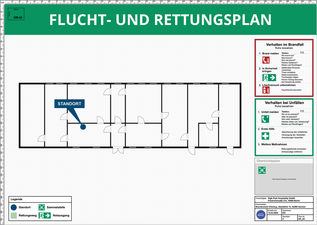 Sobald die Sammelstelle korrekt platziert und bestätigt wurde, wird sie auf dem Flucht- und Rettungsplan als „Übersichtsplan“ übernommen.